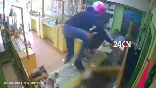 Violento robo en una joyería: 38 segundos de terror y una patada voladora