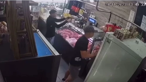 Los delincuentes se hicieron pasar por clientes y preguntaron cuánto estaba el kilo de carne picada. Pero enseguida uno de ellos extrajo una pistola y amenazó al empleado y a un cliente estaba haciendo una compra. "Vos quedate quieto porque te quemo", lo amenazaron.
