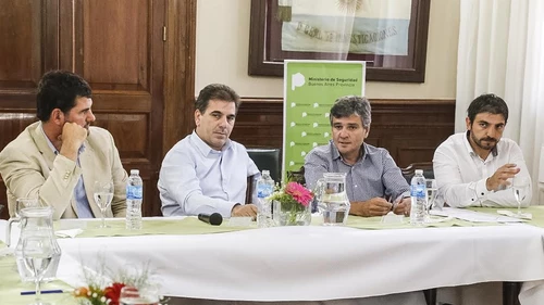 Del encuentro también participaron el jefe de la Policía Bonaerense, Pablo Bressi; el comandante general de Gendarmería nacional, Ernesto Oscar Robino; el Secretario de Seguridad del municipio de Hurlingham, Damián Feu y autoridades de fuerzas federales, entre otros.