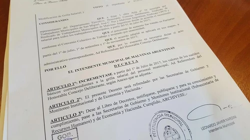 En el marco de este convenio, con el consenso de todos los gremios que integran la mesa paritaria, se incluye una bonificación remunerativa de $1.000, más el incremento de un 15% que será otorgado en tres diferentes etapas: un 6% en julio, 5% en septiembre y 4% en el mes de noviembre; lo que representa en su última etapa de implementación, un incremento total del orden del 30 % para la categoría inferior y un 22% para la categoría mayor calculado sobre el haber remunerativo vigente al 30 de junio de este año.