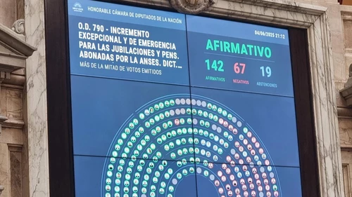 El aumento de los haberes y el bono fue aprobado con 142 votos afirmativos, 67 en contra y 19 abstenciones. Fue una contundente mayoría conformada por Unión por la Patria, el Frente de Izquierda, la Coalición Cívica, Encuentro Federal, Democracia para Siempre e Independencia. En contra votaron LLA, el PRO y bloques provinciales. La UCR se abstuvo.