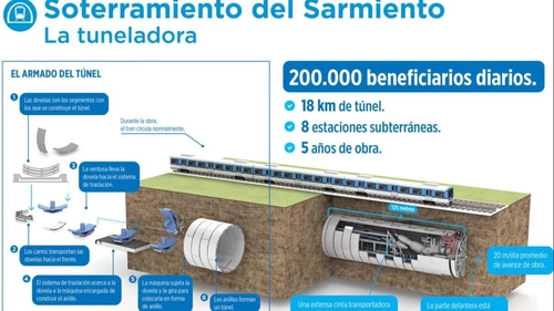 Eran 32,6 kilómetros de túnel por debajo de la traza del tren Sarmiento y la remodelación subterránea del total de las estaciones que unen Caballito con Moreno.