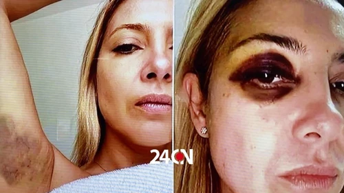 Las fotos muestran a Yañez con un ojo morado y otra marca en el brazo, cerca de la axila derecha, como consecuencia de una supuesta agresión de Fernández.