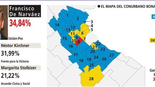 En provincia de Buenos Aires, donde se renovaban 35 diputados, la pelea electoral era para el kirchnerismo la madre de las disputas, sobre todo porque la lista de los legisladores oficialistas estaba encabezada por el ex presidente Néstor Kirchner, quien buscó convertir los comicios en un plebiscito de la gestión de su esposa, Cristina Fernández.