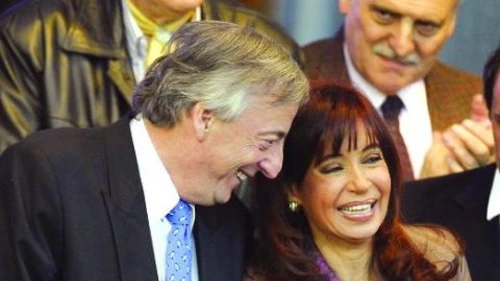 La presidenta Cristina Fernadez volvió a referirse esta tarde a la salud de Néstor Kirchner y aseguró que su esposo "está en el banquito porque se lesionó", pero "nunca abandonará la cancha" política.