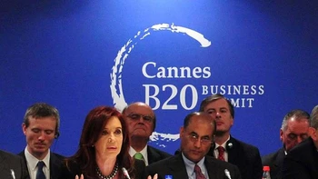 "Se los digo por la experiencia que vivió la Argentina en 2001", ilustró Cristina ante empresarios y autoridades del foro Business-20, en Cannes.