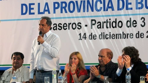 El gobernador de la provincia de Buenos Aires, Daniel Scioli, expresó el "orgullo que tenemos que tener todos los justicialistas al poder mostrar los logros alcanzados por un gran gobierno peronista, nacional, que conduce Cristina (Fernández de Kirchner) y que influye positivamente en la provincia".