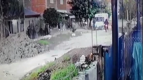 Ladrones que se desplazaban en tres motos rodearon la ambulancia y le apuntaron con un arma al conductor y le robaron todo, según se observa en las imágenes de las cámaras de seguridad.