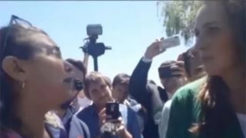 A pesar de haber impedido que los periodistas locales tuvieran la misma posibilidad de poder realizarle preguntas, la gobernadora debió responder a los vecinos que pasaron por la plaza Mitre y se acercaron a ver qué pasaba, luego de encontrarse con un operativo de seguridad en pleno centro de la ciudad.