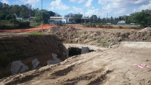 Una visita al lugar permite apreciar que el hormigonado del cauce esta todavía avanzando a ritmo moderado. Se trabaja con maquinas dentro del cuenco aliviador, que dado el movimiento de suelos perdió la forma y la profundidad.