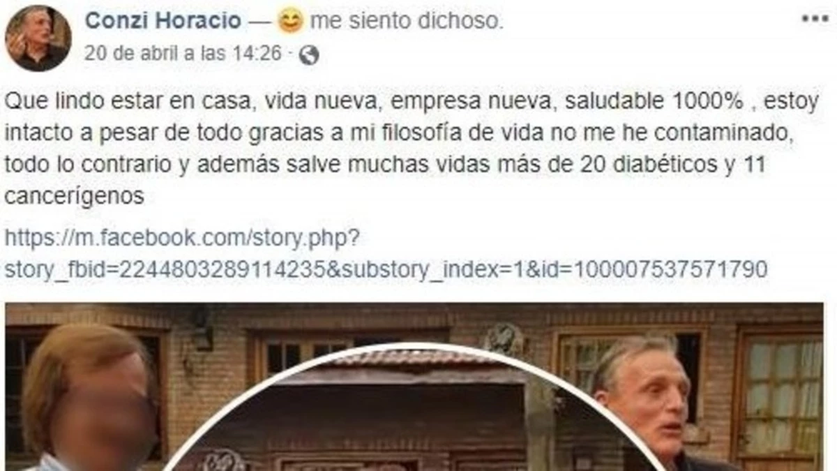 Horacio Conzi,y la primera foto que posteó en Facebook en libertad.
