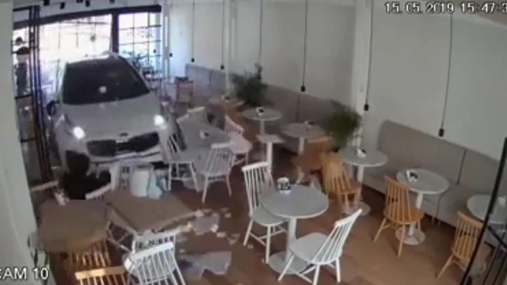 Una mujer incrustó su auto en el salón de una cafetería de Funes, a las afueras de Rosario , Santa Fe . El episodio, que podría haber sido trágico, ocurrió a las 15.47 del miércoles, como consta en las cámaras de seguridad del local.