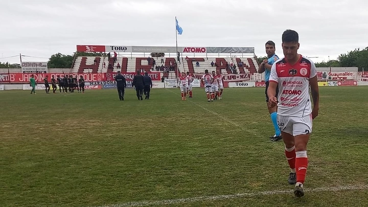 Huracán de Las Heras vencía por tres tantos contra uno a su rival pero poco le importaba el resultado, ya que se encontraba sin posibilidades matemáticas de jugar por el ascenso a la Primera Nacional. No era así el caso del equipo de La Pampa, que todavía seguía arañando por entrar. El candombe comenzó a los 33 minutos del segundo tiempo, el tercer gol de los dirigidos por Darío Alaniz, provocó que el colegiado detenga el partido debido a disturbios en la plateo de los locales.