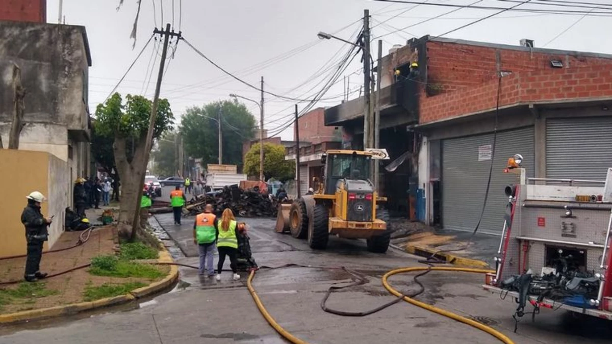 Trabajan en el lugar bomberos voluntarios de La Matanza, que apagaron el fuego. Actualmente remueven los escombros, hacen tareas de enfriamiento y se realizan pericias para tratar de determinar cómo se produjo el incendio, que fue de gran magnitud por el caucho de los neumáticos que había en el lugar.