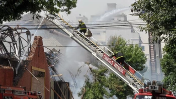 El muro se desmoronó sobre una autobomba. Las imágenes en el momento del terrible colapso.