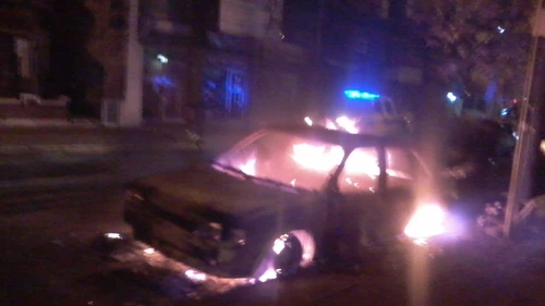 Alrededor de las cuatro y media de la mañana se comenzaron a escuchar los primeros ruidos y el humo negro de la quema de los neumáticos y los plásticos del auto inundó las inmediaciones de la intersección de la calle Almafuerte y Martín Irigoyen.