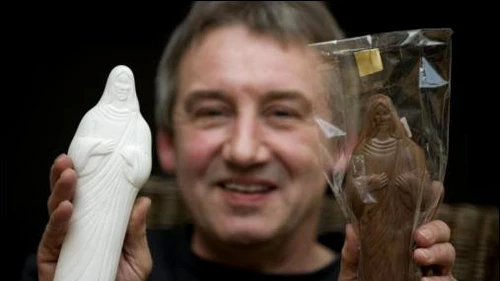 La creación de Oynhausen, sociólogo jubilado de Duisburgo, también lleva el nombre de “Sweet Lord”, emulando al Jesús dulce que se produce de manera artesanal y se materializó esta vez en la textura de un suave chocolate.