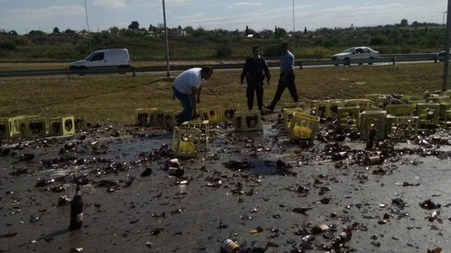 Un cargamento de cerveza destruido en la avenida Circunvalación generaba demoras esta tarde en el tránsito vehicular en la mano que va hacia el aeropuerto, entre las salidas a la autopista Córdoba-Rosario y la ruta nacional 19.