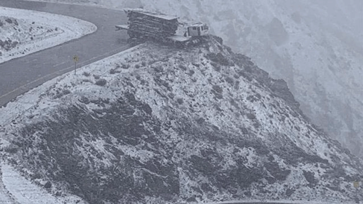 Según informó el medio chileno Acocangua News, el hielo sobre el asfalto fue un factor determinante para que el conductor perdiera el control del pesado vehículo y lograra detenerlo literalmente al borde del precipicio.