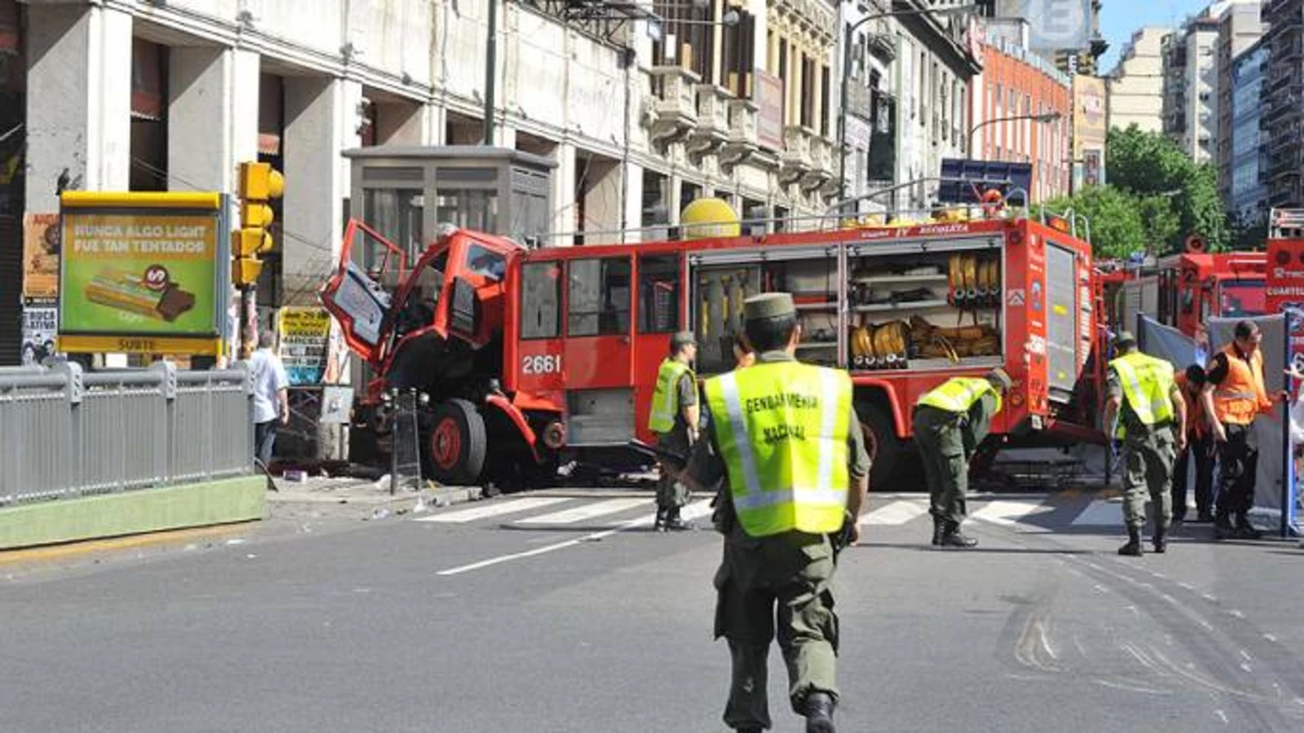 El hecho se inició en Bartolomé Mitre y avenida Pueyrredón, frente a la Plaza Miserere de esta Capital Federal, donde un Renault Clío gris que transitaba por la primera de las calles chocó con un autobomba que se desplazaba por la otra arteria.