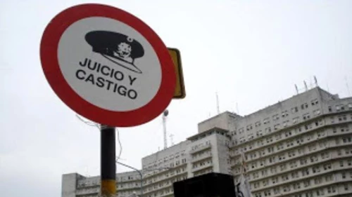 Los militantes ocupan la calle 4, entre 51 y 53, donde instalaron una radio abierta y una pantalla gigante para seguir desde el exterior de la sala de audiencias las alternativas del veredicto, sobre los acusados de delitos de lesa humanidad en centros de detención que dependían de la jefatura de policía bonaerense, de la que era jefe Ramón Camps.