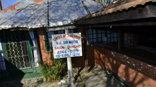 Desde el exterior, un cartel destaca la figura del General San Martín y aclara que el local es un centro para jubilados. Pero en el interior una barra y las luces del techo demuestran que es una bailanta.