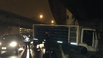 El primer siniestro ocurrió alrededor de las 4.30, cuando un camión Volkswagen-220 de la empresa Carrizo, que transportaba pollos congelados, perdió el control en la avenida Ingeniero Huergo al 1300, en sentido Capital. Las causas del siniestro aún se desconocen pero voceros de la Policía Federal deslizaron que se habría producido porque la carga estaba mal estibada. El conductor resultó ileso.